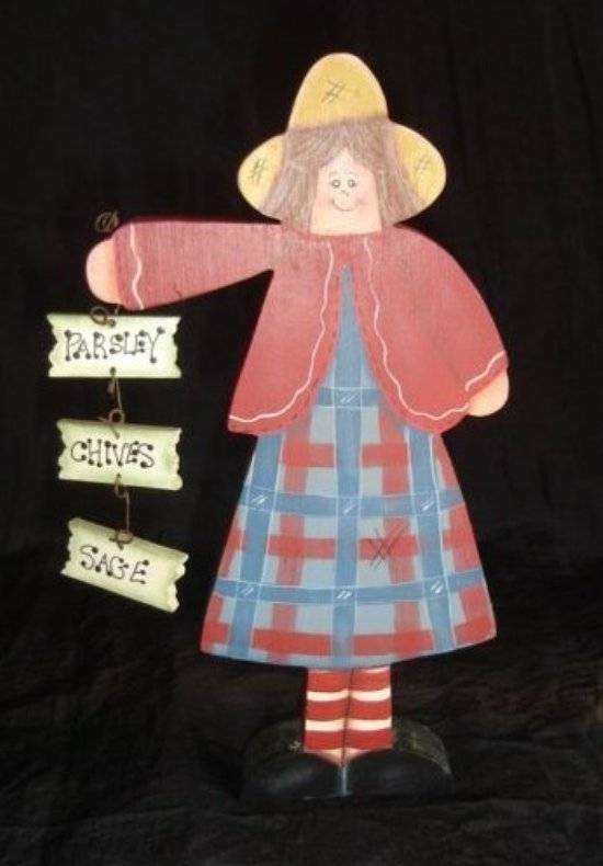 A LOVELY OUMA HOLDING A PAESLEY, CHIVES , SAGE SIGN,IN GOOD CONDITION,SIZE 23.5CM HIGH AND 2.1CM WIDE.