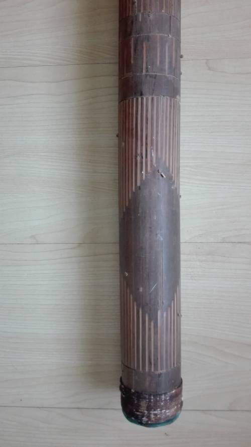 A rainstick is a long, hollow tube partially filled with small pebbles or beans that has small pins or thorns arranged helically on its inside surface. When the stick is upended, the pebbles fall to the other end of tube,