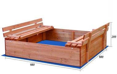 The unique design of the Wooden Sandpit allows the hinged lid to fold back on either side to form two bench seats.