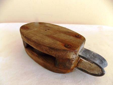 WOODEN SINGLE ROPE PULLEY. LENGTH WITH HANDLE 21cm - WITHOUT 15.5cm HEIGHT 6.5cm WIDTH 9cm. SHIPPING COSTS R60.00 www.bidorbuy.co.za/seller/1936279/Hartie