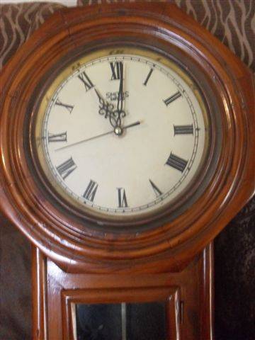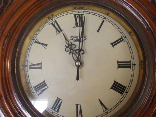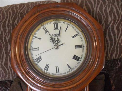 BEAUTIFUL WOODEN SMITHS ENFIELD WALL CLOCK........QUARTZ.......(NOT KEY WOUND)..............HAS PENDULUM........NO CHIME.........SECOND HAND GOES AROUND.........WORKING....GLASS AND WOOD INTACT.....