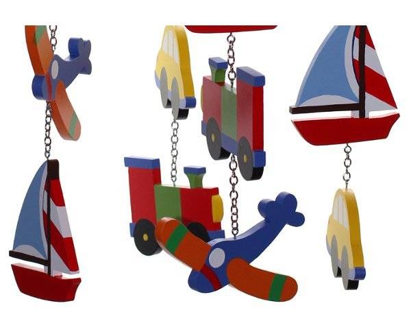 Cars, trains, aeroplanes and sailing boats hang together to create this striking and brightly coloured boy's transportation ceiling mobile. Simply stunning - the perfect addition to any little boy's room!