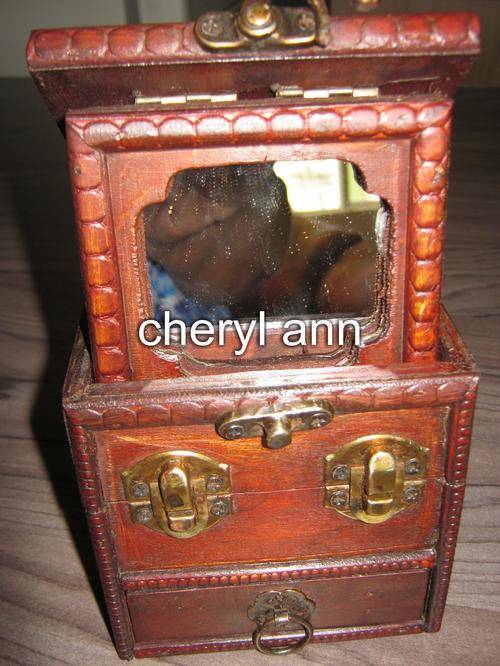 WOODEN TRINKET BOX WITH MIRROR