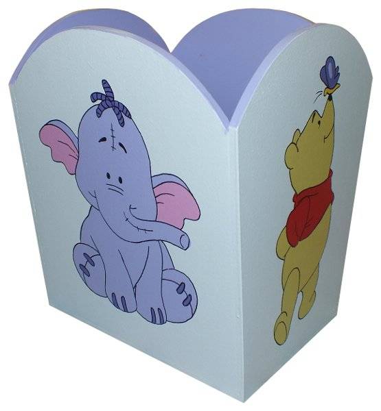 Too gorgeous!!! This lovely bin is made from solid wood, painted in white and pastel purple and decorated with the cutest Winnie the Pooh & Heffalump paintings!