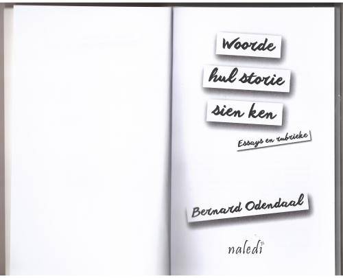 Woorde, uit die mond of skryfhand van mense wat hulle storie ken, boei Bernard Odendaal so lank hy kan onthou. As posiedosent in Bloemfontein en, later, skryfskooldirekteur op Potchefstroom kon hy sy brood op grond van sy belangstelling verdien.