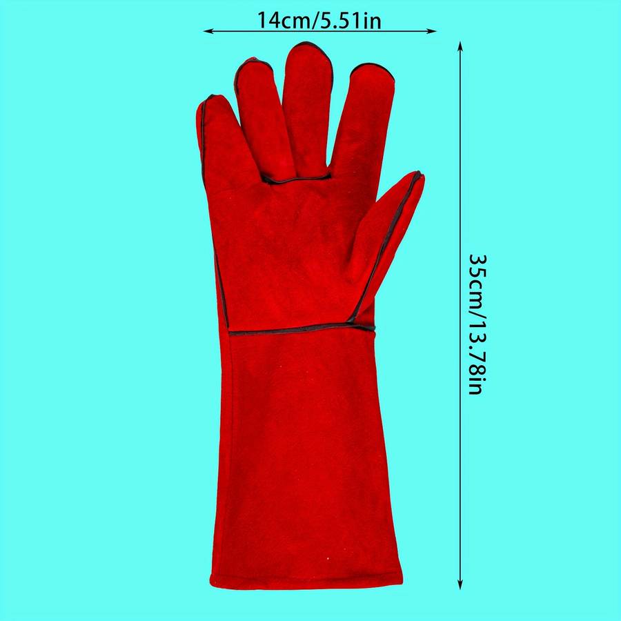 Work Gloves Color Red color Red: Heavy-Duty Double-Layer Work Gloves - Fire-Resistant, Extreme Heat Protection, E Operation Instruction:Dry Clean Only Weaving Method:Woven Material:Leather Season:All-season