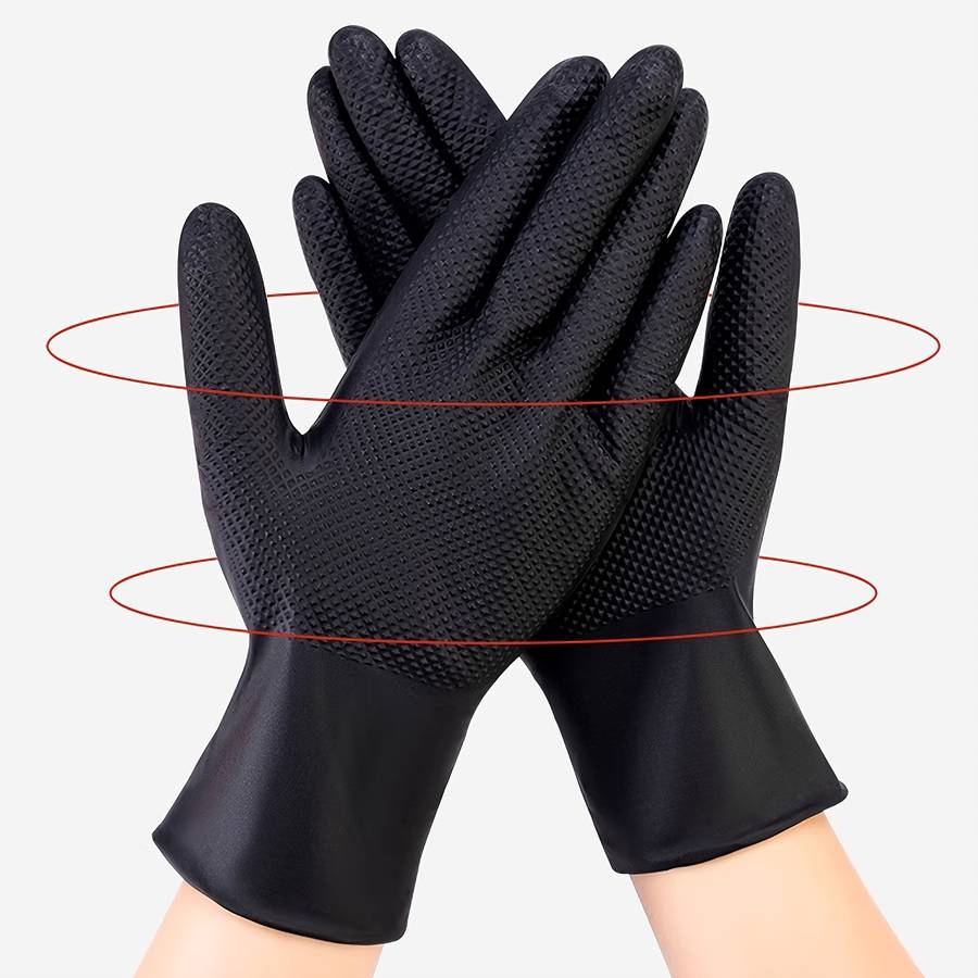 8g Heavy-Duty Gloves, 9-Inch Black Diamond Texture Gloves, Disposable Rubber Glo