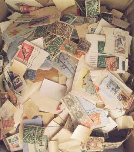 WORLD LOT of +/- 1KG STAMPS in BOX incl KGV, KGVI & QEII -Union SA, Rhodesia, Nyasaland, G.B - etc