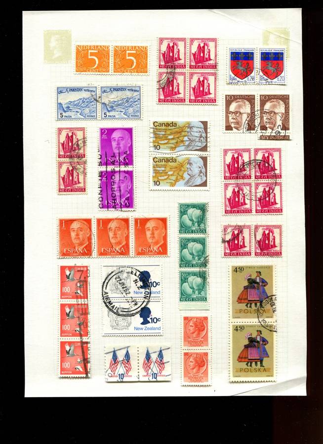 World Mix in Multiples - 41 Stamps  Mounted On Old Album Page