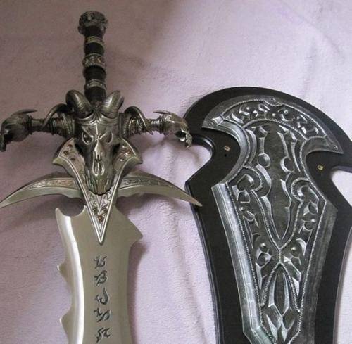 1:1 Replica of the Frostmourne sword of World of Warcraft. It is made of stainless steel and very detailed craftsmanship with genuine leather grip.