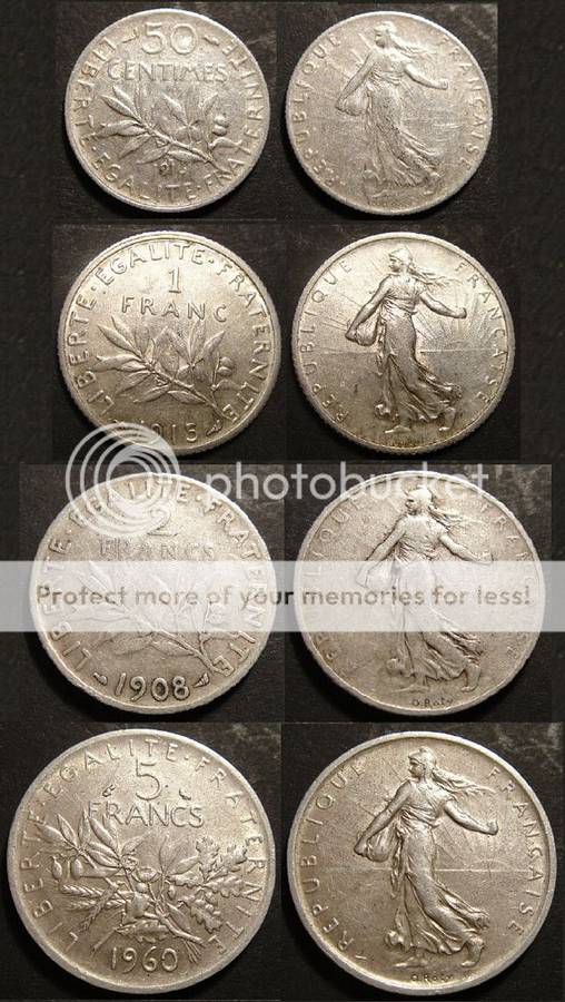 WORLD SILVER : France : The Sower : Type set up to 5 Franc
