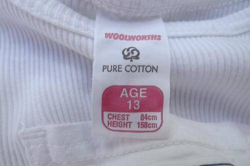 Worldwide Wear Pure Cotton White Dress for 13 yr old by Woolworths- chest 84cm - as new