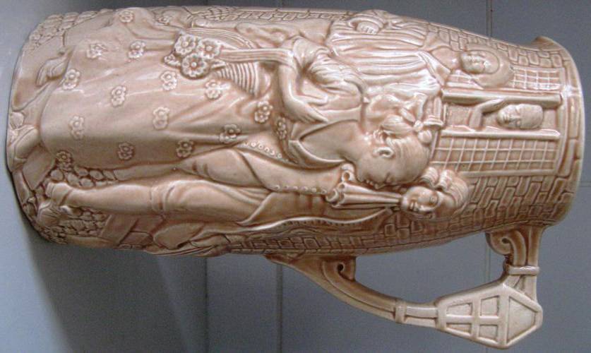 The song that is the basis for the jug was a romantic ballad written by Henry Carey (1687-1743), an English poet, dramatist and songwriter. It tells the story of a spirited but poor girl who is waiting for her love's seven years of indentured servitude (he is evidently apprenticed to a tradesman) to end so that they can be married.