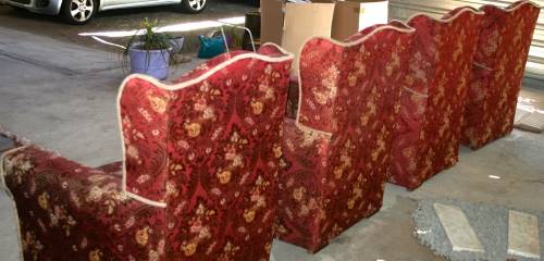 WOW 4 GORGEOUS 1950'S WING BACK CHAIRS WITH ROCKING SPRINGS - WITH IMPORTED ITALIAN FABRIC - VERY GOOD CONDITION FOR ITS AGE!!!