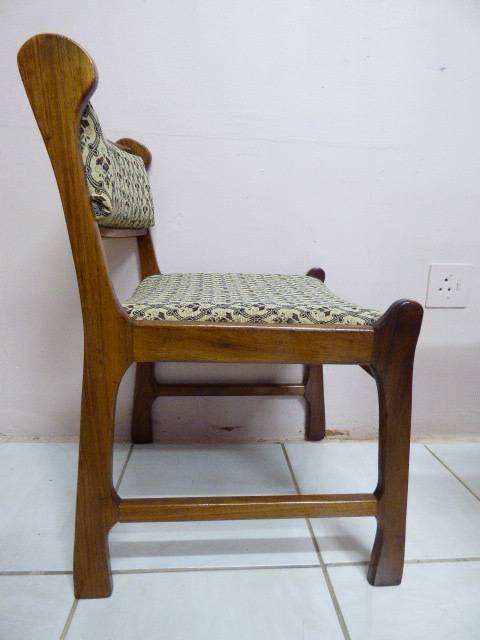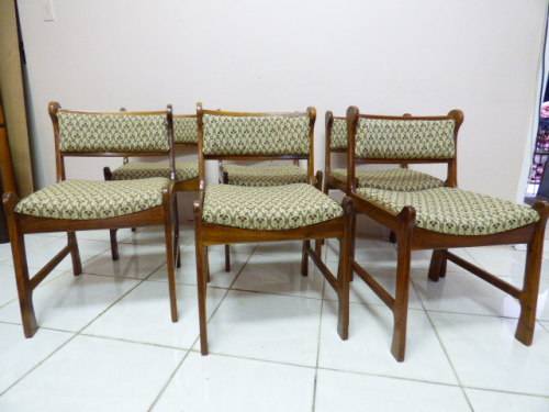 THESE 6 GORGEOUS TEAK DINING ROOM CHAIRS ARE IN FANTASTIC CONDITION AND NEWLY UPHOLSTERED, THE WOOD IS SOLID AND STURDY AND THEY HAVE NO CRACKS, BREAKS OR CHIPS. THE CHAIRS MEASURE APPROXIMATELY 53cm x 49cm x 78cm HIGH. THEY WILL LOOK STUNNING WITH ANY TABLE, OR AS RECEPTION AREA CHAIRS OR OCCASIONAL CHAIRS.