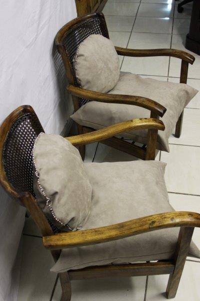 THIS ABSOLUTELY BEAUTIFUL PAIR OF ANTIQUE RATTAN CHAIRS WITH BRAND NEW CUSHIONS ARE STUNNING AND PERFECT AS A SHOW PIECE IN A BEDROOM, LOUNGE, STUDY, YOU NAME IT.... THE CHAIRS ARE IN A GOOD CONDITION EXCEPT FOR SLIGHT DAMAGE ON THE RATTAN HOWEVER THEY ARE STILL IN A VERY ACCEPTABLE CONDITION!!! THE CHAIRS ARE BUILT SOLID AND DEFINITELY MADE TO LAST - THEY ARE FIRM ON THE GROUND!!! PLEASE VIEW THE PICS VERY CAREFULLY FOR MORE DETAIL AND THE CONDITION AS THIS FORMS PART OF THE DESCRIPTION - WHAT YOU SEE IS WHAT YOU GET! POSTAGE AND PACKAGING WILL NOT BE POSSIBLE SO PLEASE ARRANGE FOR COLLECTION IN EDENVALE FREE OF CHARGE OR VIEW OUR SHIPPING OPTIONS! WE CAN ASSIST WITH DELIVERY AND / OR COURIER SERVICE SO PLEASE ASK FOR A QUOTE BEFORE BIDDING!