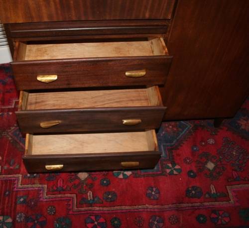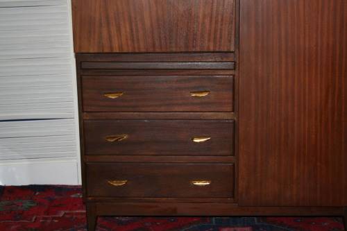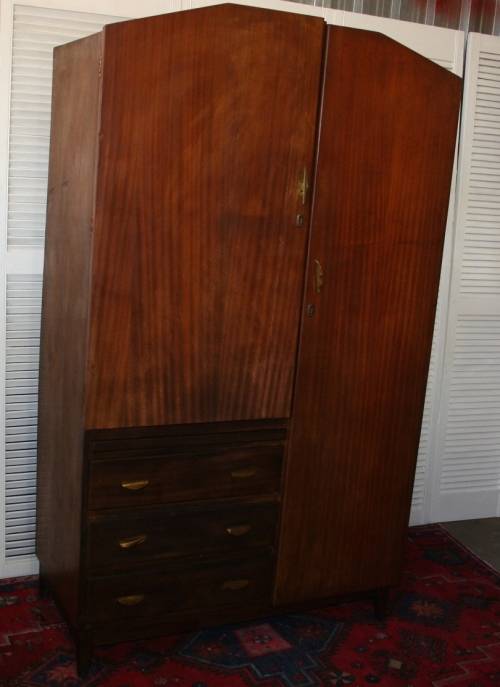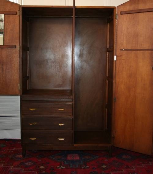 WOW A EXQUISITE 1960'S WARDROBE WITH LOTS OF DRAWERS AND SPACE WITH ORIGINAL BRAS HANDLES STUNNING
