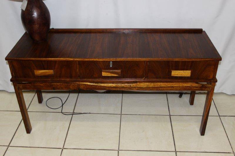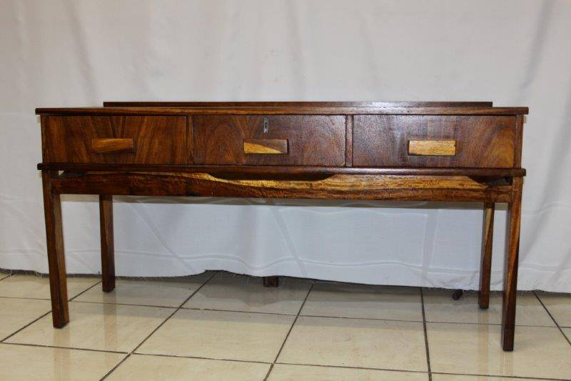 A BEAUTIFUL RETRO DRESSER OR SIDE SERVER WITH 3 DRAWERS IN GREAT CONDITION!!! THIS IS THE PERFECT PIECE TO DO A PAINT TECHNIQUE AS WELL IF YOU DO NOT WANT THE WOOD LOOK.... THE DRESSER IS APPROXIMATELY 1370mm x 460mm x 690mm HIGH. PLEASE VIEW THE PICS VERY CAREFULLY FOR MORE DETAIL AND CONDITION AS THIS FORMS PART OF THE DESCRIPTION - WHAT YOU SEE IS WHAT YOU GET! POSTAGE AND PACKAGING WILL NOT BE POSSIBLE SO PLEASE ARRANGE FOR COLLECTION IN EDENVALE!!!