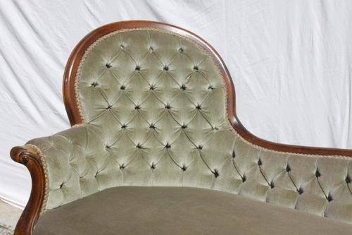 WE ARE OFFERING AN ABSOLUTELY MAGNIFICENT VICTORIAN CARVED SOLID WALNUT CHAISE LOUNGER IN PRISTINE CONDITION FOR THE AGE! THE CHAISE IS FIRM AND STABLE AND VERY HEAVY (SOLID), THE WOOD IS PRISTINE AND THE FABRIC IS PRISTINE! THIS CHAISE LOUNGER IS IN A LEAGUE OF IT'S OWN AND ABSOLUTELY STUNNING! THEY WORK SO WELL IN A DRESSING ROOM, IN FRONT OF A BED OR ON A PATIO FOR READING AND RELAXING!