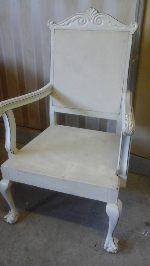 WOW!! A MAGNIFICENT SHABBY SHICK IMBUIA BALL AND CLAW CHAIR. WITH WOODEN SEAT AND BACKREST