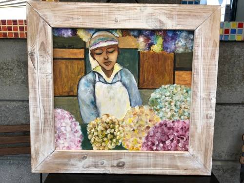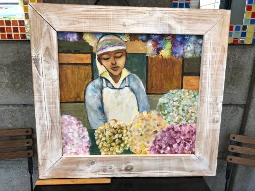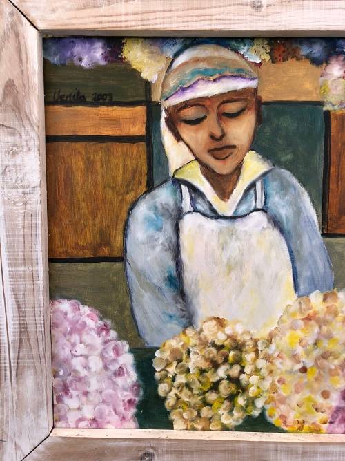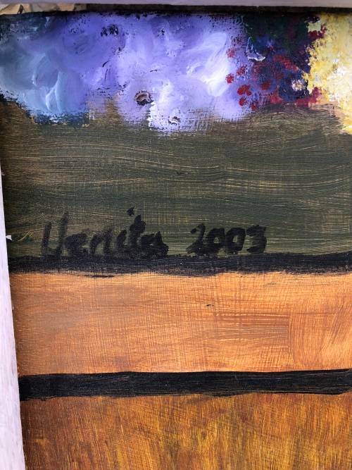 WOW !!! A STUNNING LARGE SIGNED OIL ON BOARD SIGNED VENITA 2003 IN A VERY HEAVY RUSTIC FRAME