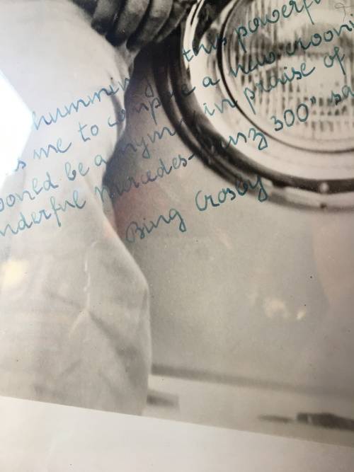 WOW !!! AMAZING FIND , A CLASSIC POSTER OF BING CROSBY SIGNED IN BLUE PEN ALONG WITH A FAMOUS QUOTE