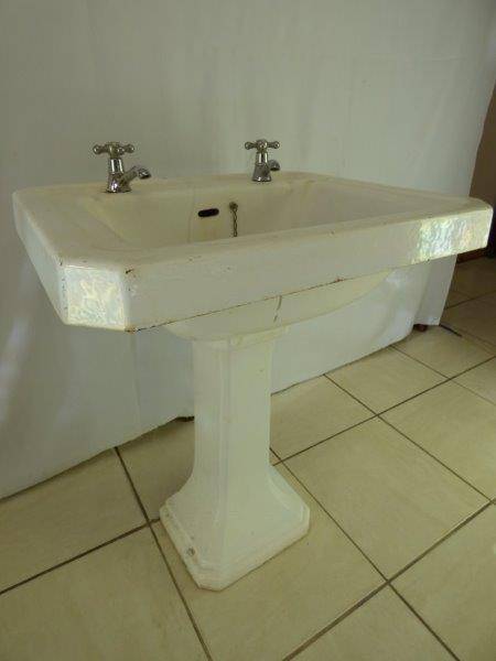 A MAGNIFICENT LARGE FREE STANDING ANTIQUE CAST IRON BASIN AND PEDESTAL WITH THE ORIGINAL TAPS!!! THE BASIN AND PEDESTALS SHOW THEIR AGE HOWEVER THEY ARE STILL COMPLETELY INTACT AND IN REMARKABLE CONDITION FOR THE AGE! IT'S ALSO QUITE RARE TO FIND THE BASIN AND PEDESTAL TOGETHER! THE SIZE OF THE BASIN IS APPROXIMATELY 630mm x 510mm x 800mm HIGH. PLEASE VIEW THE PICS VERY CAREFULLY FOR MORE DETAIL AND CONDITION AS THIS FORMS PART OF THE DESCRIPTION - WHAT YOU SEE IS WHAT YOU GET! POSTAGE AND PACKAGING WILL NOT BE POSSIBLE SO PLEASE ARRANGE FOR COLLECTION IN EDENVALE FREE OF CHARGE!!!