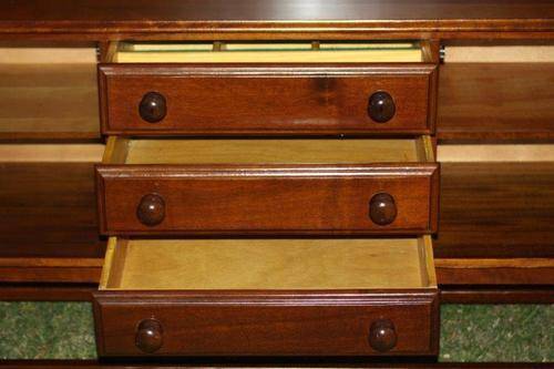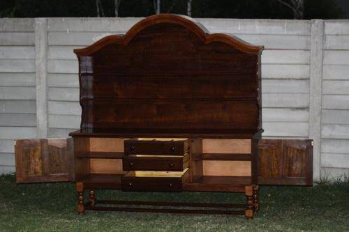 THIS SOLID WELL BUILT DISPLAY SIDE SERVER IS AWESOME AND IN EXCELLENT CONDITION FOR IT'S AGE!!! IT HAS BEAUTIFUL DETAIL AND BUILT TO LAST!!! HAVE A GOOD LOOK AT THE DETAILING - FANTASTIC!!! THE TOP COMES OFF FOR EASY TRANSPORT. IT LOOKS LIKE THIS FURNITURE WAS BARELY USED... THE SIZE OF THE SIDE SERVER IS APPROXIMATELY 1800mm WIDE x 480mm DEEP x 1930mm HIGH.