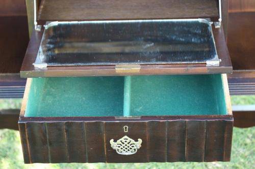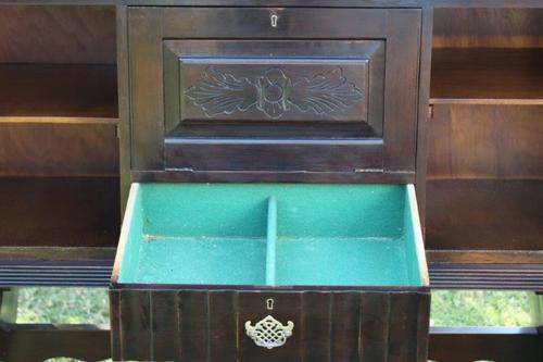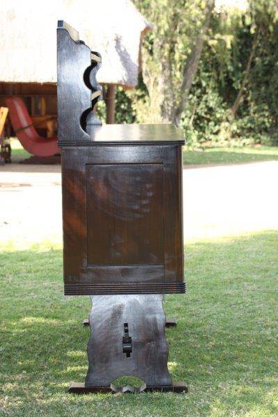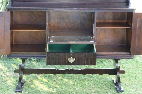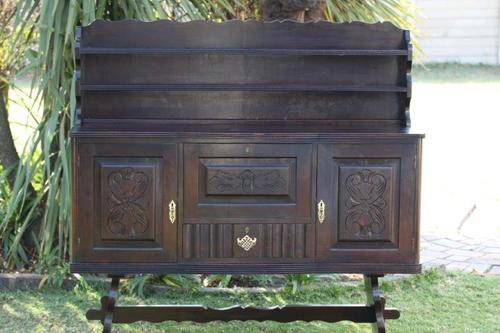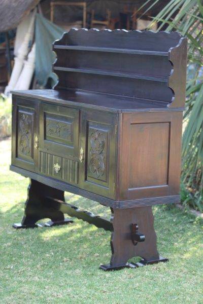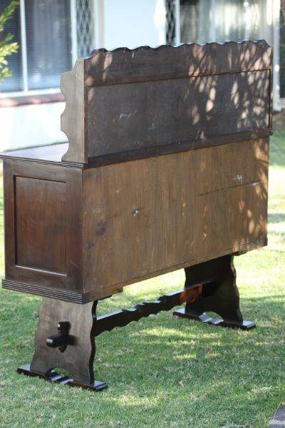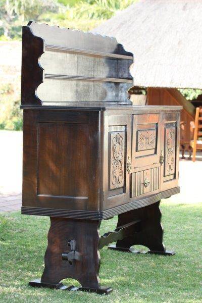 THIS SOLID WELL BUILT DISPLAY SIDE SERVER IS AWESOME AND IN EXCELLENT CONDITION FOR IT'S AGE!!! IT HAS BEAUTIFUL DETAIL AND BUILT TO LAST!!! HAVE A GOOD LOOK AT THE DETAILING - FANTASTIC!!! THE TOP COMES OFF FOR EASY TRANSPORT. IT LOOKS LIKE THIS FURNITURE WAS BARELY USED... THE SIZE OF THE SIDE SERVER IS APPROXIMATELY 1460mm WIDE x 480mm DEEP x 1450mm HIGH (1000mm HIGH TO COUNTER).