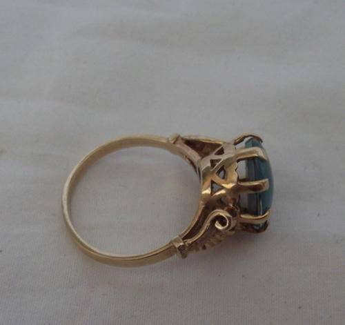 The stone is 1.5 cm x 1 cm. The inside measurement is 12 mm x 12 mm. The gold test for 9 ct and the ring has 3 hallmarks that I don't recognise, one like a star with a base, a half moon and a D.