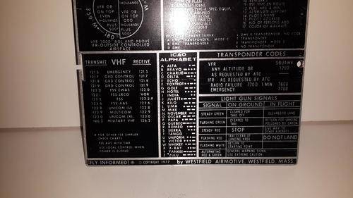 This is a previously used aircraft clipboard. It's dated 1967 and made by Westfield Airmotive, Westfield, Mass. It is in very good codition and looks really nice and close to newish. It looks like alluminium with black painted surface.