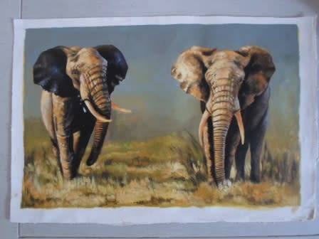 WOW!!!! BANDA SAKANYA "ELEPHANTS" OIL ON CANVAS 560 X 360mm VALUE R2000