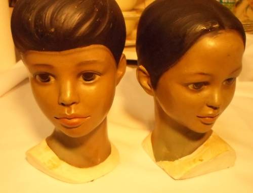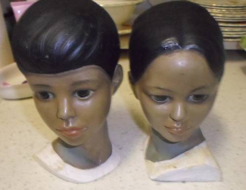 WOW !!!! 2 X BEAUTIFUL LARGE VINTAGE POLYNESIAN FIGURINES HEADS 1050,s