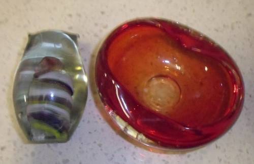 WOW RED MURANO ASHTRAY + GLASS PAPER WATE