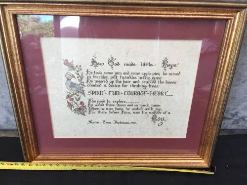 WOW !!!! FANTASTIC FRAMED SCRIBE BY TOM JACKMAN 1987 " HOW GOD MADE LITTLE BOYS"