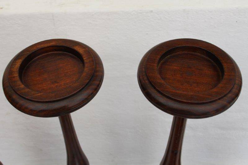 THIS IS AN EXCEPTIONALLY BEAUTIFUL SET OF RARE "FECHTERS OF KNYSNA" BLACKWOOD SIDE TABLES / ASHTRAY STANDS IN PRISTINE CONDITION!!! THESE STANDS WERE USED AS ASHTRAY STANDS IN THE OLD DAYS BUT THESE DAYS THEY ARE PERFECT FOR A DRINK OR CUP OF COFFEE!!! THEY ARE EXCELLENT AS OCCASIONAL TABLE STANDS OR TO DISPLAY A SINGLE ITEM! ONE COULD ALSO PUT ANOTHER TOP ON TO MAKE THEM BIGGER TABLES!!! BLACKWOOD IS VERY RARE & VERY VALUABLE THESE DAYS MAKING THESE TABLES VERY COLLECTABLE!!! THE TABLES ARE APPROXIMATELY 180mm DIAMETER (AT THE BASE) x 610mm HIGH. PLEASE VIEW THE PICS VERY CAREFULLY FOR MORE DETAIL AND CONDITION AS THIS FORMS PART OF THE DESCRIPTION - WHAT YOU SEE IS WHAT YOU GET! PLEASE ARRANGE FOR COLLECTION IN TABLEVIEW FREE OF CHARGE OR VIEW OUR SHIPPING OPTIONS!!! WE CAN COURIER ANYWHERE IN THE COUNTRY AT REASONABLE RATES!