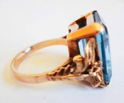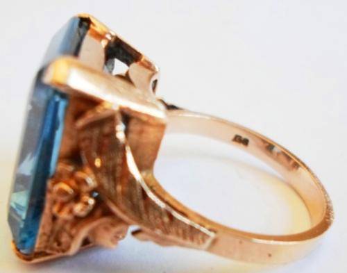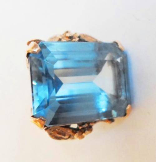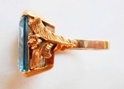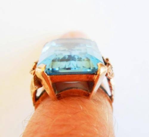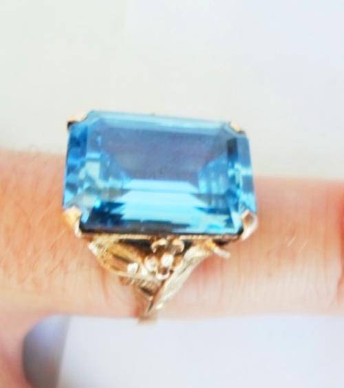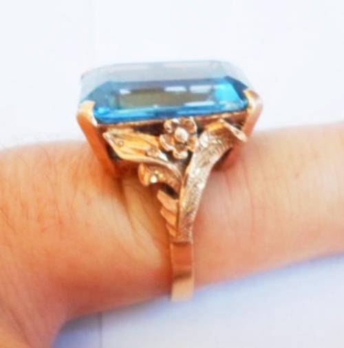 WOW! HUGE DETAILED VINTAGE 9CT ROSE GOLD & 13.0CT+ BLUE TOPAZ RING SIZE O 8,5gr VALUE R5500