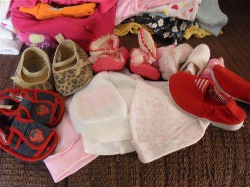 HUGE BARGAIN........THESE CLOTHES BELONGED TO MY GRANDAUGHTER WHO HAS OUTGROWN THE CLOTHES SO FAST......JOBLOT OF + - 100 BABY GIRL ITEMS ...SOME NEVER WORN ...SOME WORN 1......MOSTLY ARE 0 TO 3 TO 6 MONTHS...........HUGE VALUE HERE.......POSTAGE IS R85