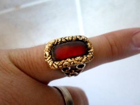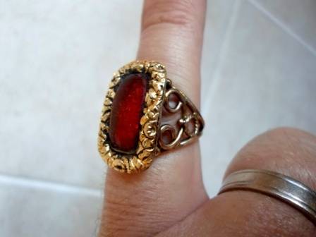 THE AMBER HAS WEAR TO THE SURFACE FROM YEARS OF USE