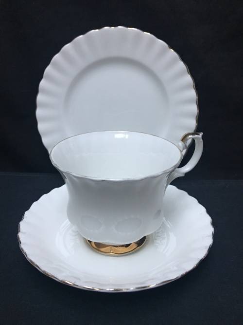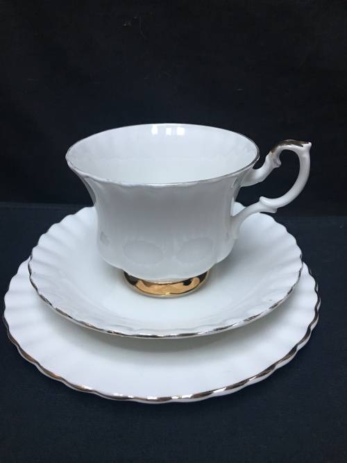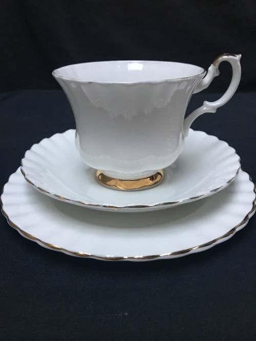 STUNNING ROYAL ALBERT VAL D'or TRIO IN EXCELLENT PRE OWNED CONDITION . NO CHIPS , CRACKS OR CRAZING