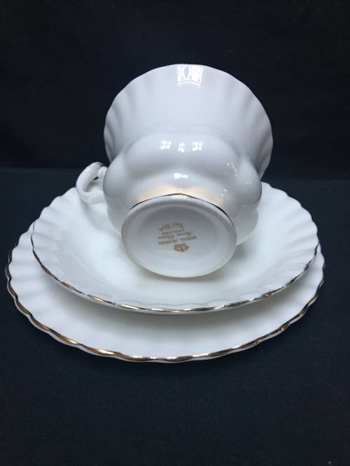 This is Royal Albert tableware for traditional finesse - Val d'Or is translucent white bone china in the baroque Montrose shape with fluted edges, and that extra touch of gold trim on the edges and handles. In short, gilt edged luxury for the tabletop.