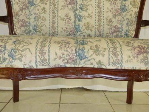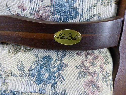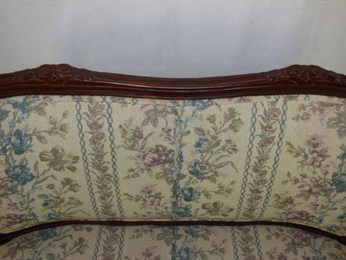 WE ARE OFFERING AN ABSOLUTELY MAGNIFICENT HAND CARVED EXCLUSIVE "ADAM BEDE" VICTORIAN STYLE TWO SEATER COUCH IN EXCELLENT CONDITION FOR THE AGE!!! THE COUCH IS FIRM AND STABLE, THE WOOD IS PRISTINE AND THE FABRIC IS FANTASTIC! THIS COUCH IS IN A LEAGUE OF IT'S OWN AND ABSOLUTELY STUNNING! THEY WORK SO WELL IN A DRESSING ROOM, IN FRONT OF A BED OR ON A PATIO FOR READING AND RELAXING!