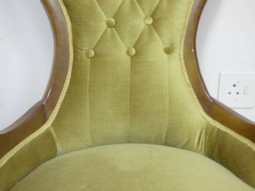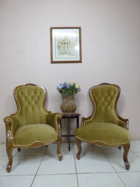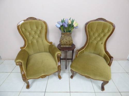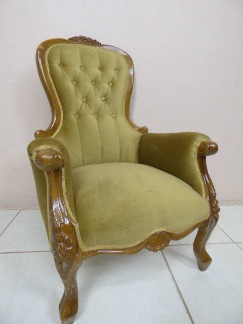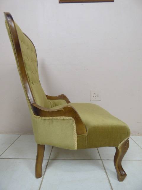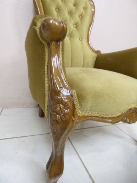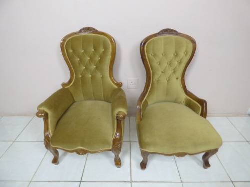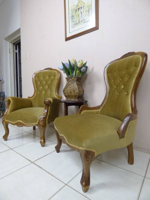 WE ARE OFFERING TWO ABSOLUTELY MAGNIFICENT VICTORIAN KING & QUEEN CHAIRS IN GREAT CONDITION FOR THE AGE! THE CHAIRS ARE FIRM AND STABLE, THE WOOD HAS A FEW SCUFFS AS SEEN IN THE PICS AND THE FABRIC IS FANTASTIC! THESE CHAIRS ARE IN A LEAGUE OF THEIR OWN AND ABSOLUTELY STUNNING! THEY WORK SO WELL IN A DRESSING ROOM, IN FRONT OF A BED OR ON A PATIO FOR READING AND RELAXING! THE KING CHAIR MEASURES 57cm x 72cm x 108cm HIGH, THE QUEEN CHAIR MEASURES 58cm x 65cm x 108cm HIGH.