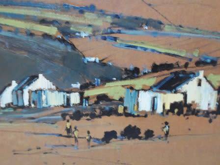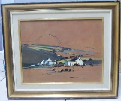 WOW!! MEL BRIGG LANDSCAPE WITH COTTAGES & PEOPLE OIL ON BOARD DATED '78 450 X 350mm VALUE R6500