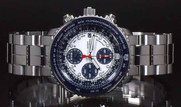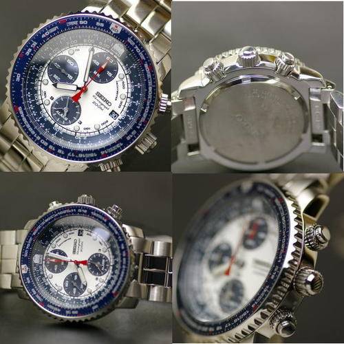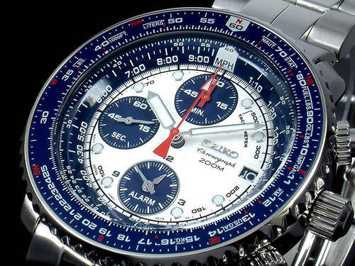 SEIKO PILOT / FLIGHTMASTER WATCH WITH WHITE AND BLUE PANDA DIAL CHRONOGRAPH, WATER RESISTANT 200M