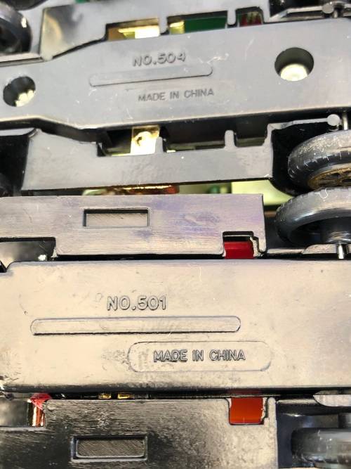 WOW !!! SET OF FOUR VINTAGE PLASTIC DINKY STYLE TOY CARS NUMBERED 501 , 502 , 503 AND 504