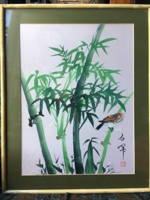WOW !!!! STUNNING CHINESE TRADITIONAL PAINTING ON SILK WITH CALLIGRAPHY FRAMED BEHIND GLASS