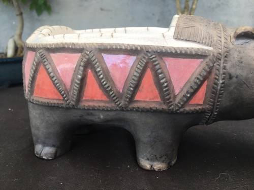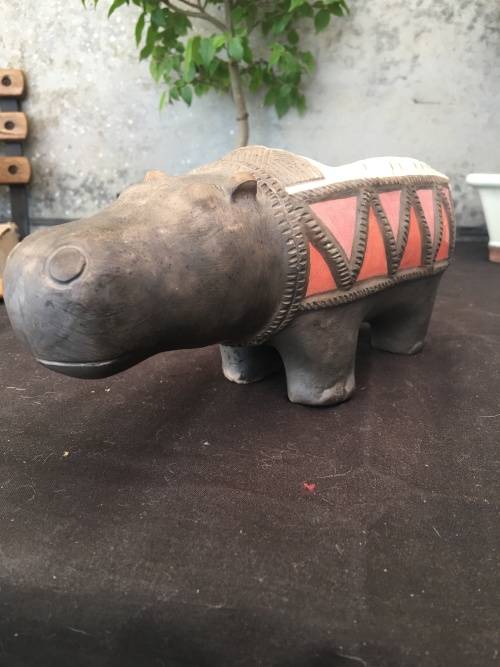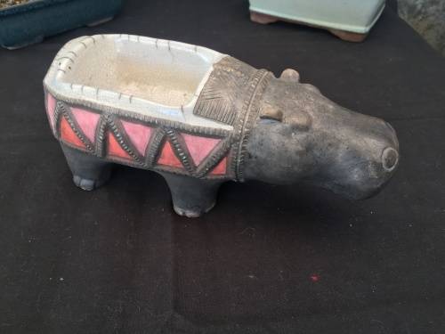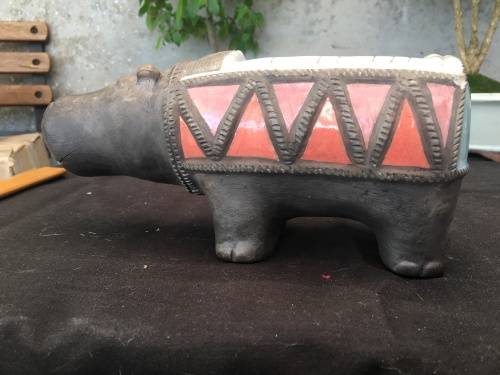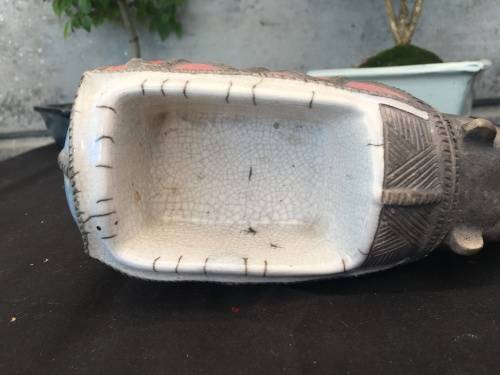 WOW !!!! STUNNING VINTAGE GLAZED PORCELAIN HIPPOPOTAMUS TRINKET DISH BY