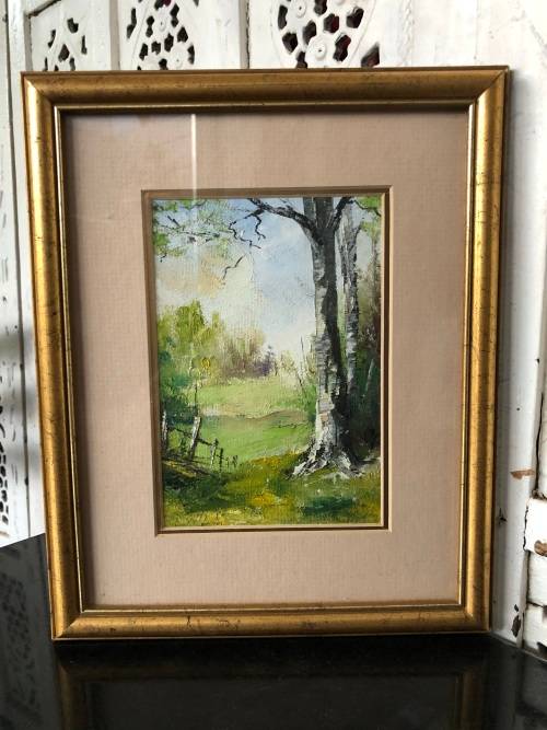 WOW !!! STUNNING SMALL FRAMED OIL ON BOARD - BLUEGUM TREES - FRAMED BEHIND GLASS - SIGNED - STUNNING DECOR ITEM