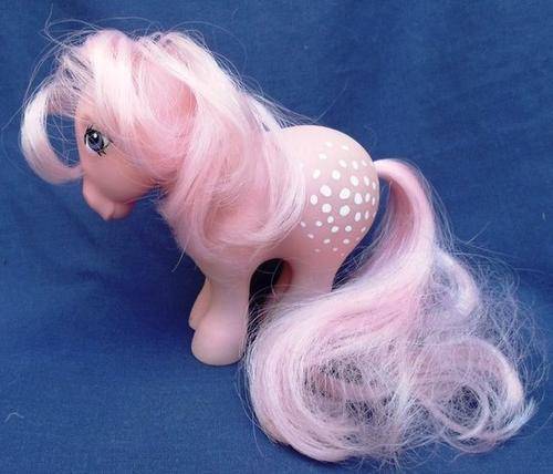 THE 1982 COTTON CANDY IS 11CM TALL AND THE 1983 13CM TALL, PINK WITH DIFFERENT COLOURED (AND DIFFERENT LENGTH) PINK HAIR, 1982 HAS DARK PURPLE EYES AND 1983 BLUE EYES, BOTH HAVE UNEVEN DOTS AS SYMBOLS. THERE IS A BIT OF AGE DISCOLOURATION SO PLEASE LOOK AT THE IMAGES CAREFULLY. NONETHELESS, THESE ARE OF THE VERY FIRST MY LITTLE PONIES AND VERY, VERY COLLECTABLE!!! POSTAGE R40. REFER IMAGES